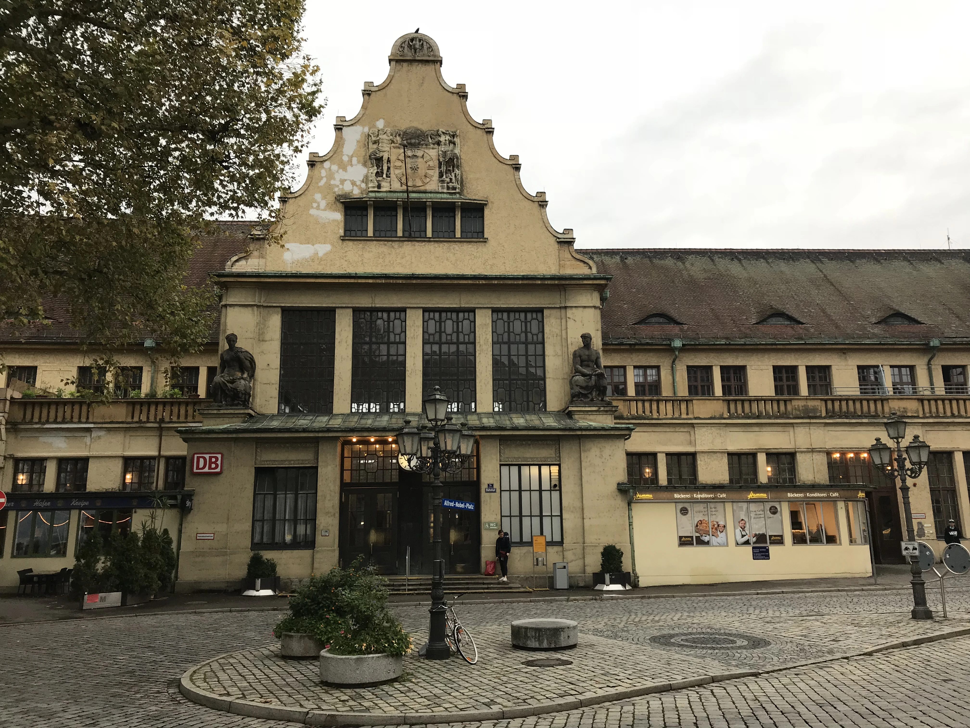 Er wurde errichtet als quadratischer Bau um einen Innenhof an dessen Nordflügel Bahnsteige und ein weiteres Gebäudeteil anschließen. Die Dampfzüge der baierischen Ludwig-Süd-Nord-Bahn mußten hier "Kopf machen", d. h. die Lok wenden und umspannen, so dass danach in die Gegenrichtung weitergefahren werden konnte (z. B. nach Bregenz, ins Württembergische, die Schweiz oder zurück nach Augsburg. Erst später kam die Allgäu-Strecke nach München hinzu). Der Fußgänger-Steg über das Gleisvorfeld an der ehemaligen Post zur Hinteren Insel wurde 2021 ersatzlos demontiert.
