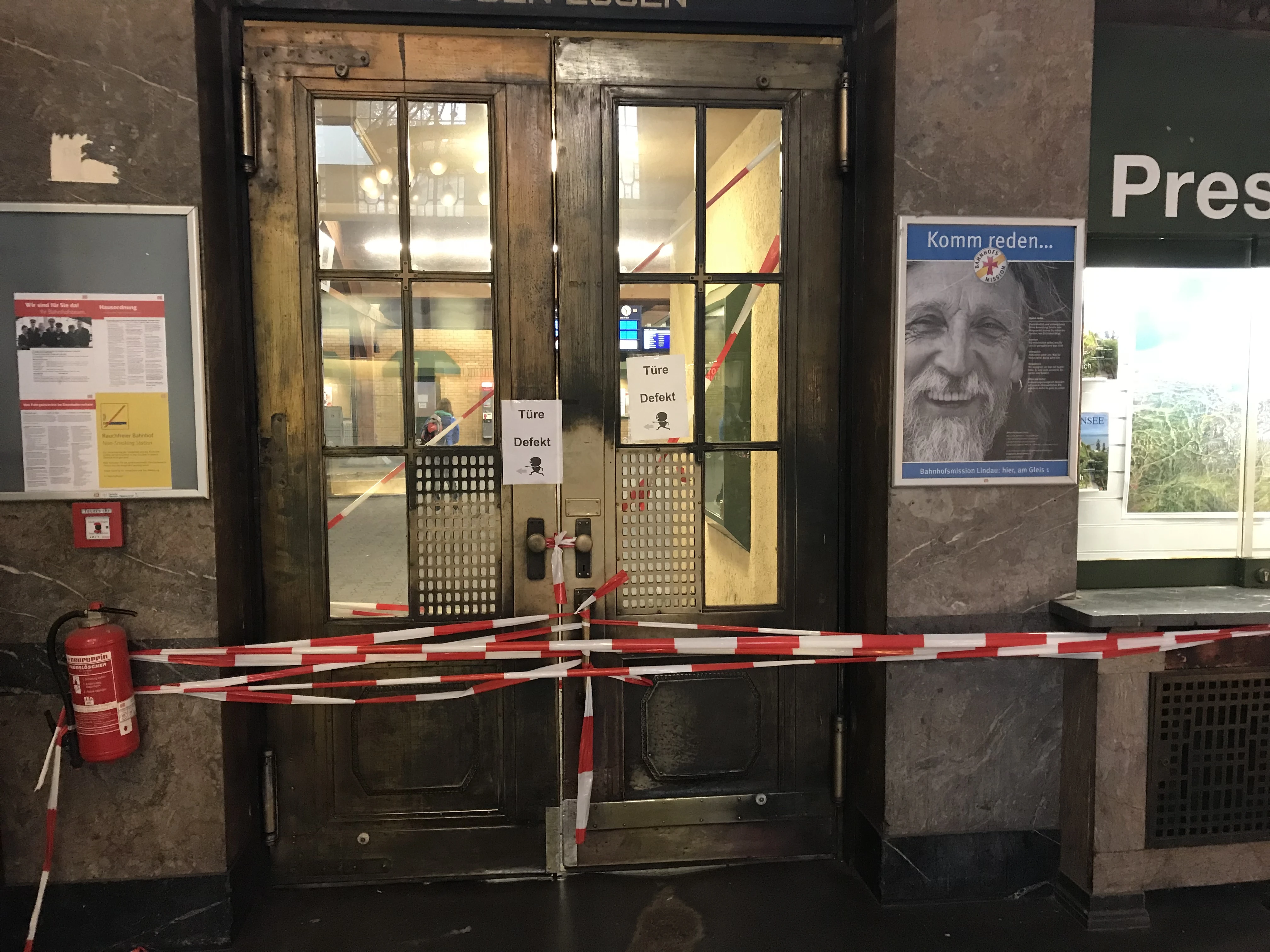 Gesperrter Durchgang zwi Haupthalle und Perrons, Schwingtür