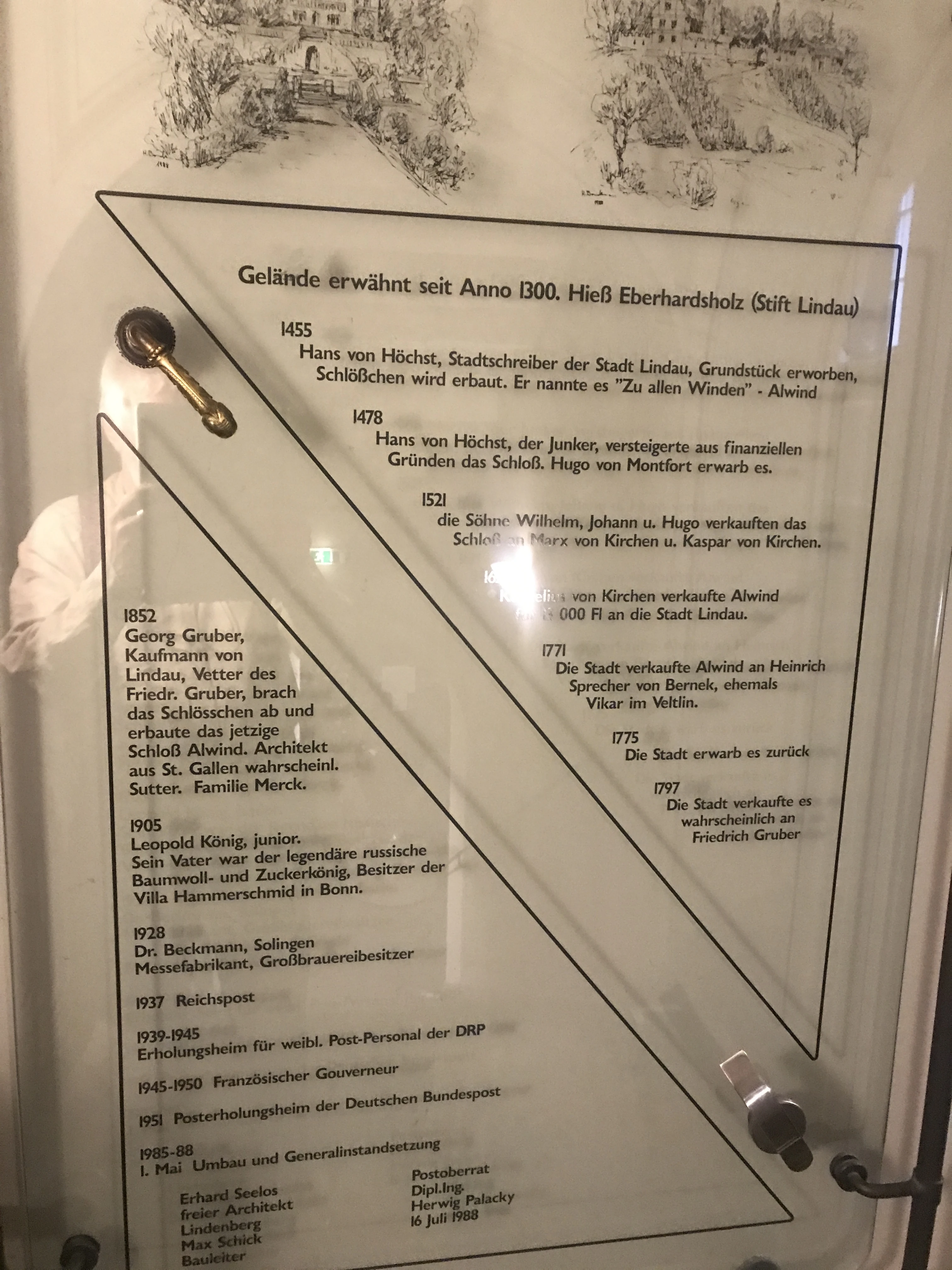 - Herren von Höchst (im 15. Jahrhundert): Der Lindauer Johann von Höchst errichtete 1455 ein burgähnliches Schlösschen, das er „Alwind“ nannte.